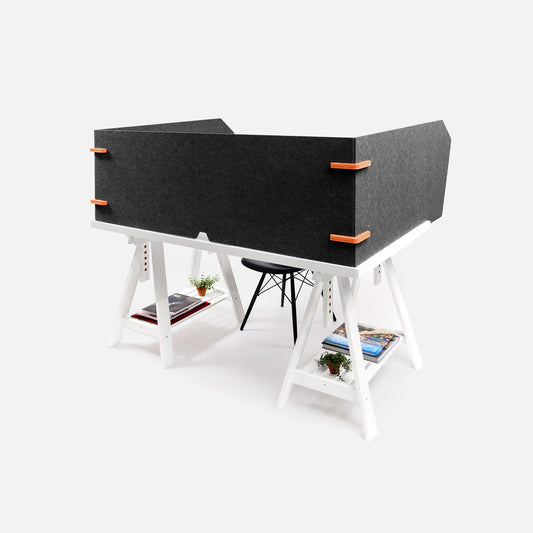 De Deskify TopDesk maakt van jouw werkplek een oase van rust. De TopDesk staat op jouw bureau en zorgt ervoor dat je optimaal en rustig kan werken. Ideaal voor in grote kantoortuinen of voor jouw thuiswerkplek. Omdat de TopDesk op het bureaublad staat, is deze ideaal voor zit-sta bureaus. De TopDesk kan ook dienen als prikbord. Ideaal voor notities of leuke foto's. De hoogte van de TopDesk is 50cm en het diepste punt is ca. 100cm.