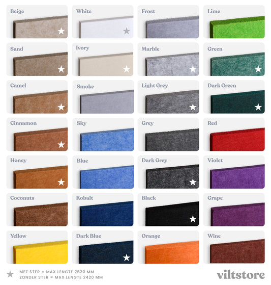 Heb je een vraag of twijfel je over de juiste keuze? Onze experts helpen je graag verder! Of het nu gaat om kleur, montage of akoestische eigenschappen, we denken met je mee. Stuur je vraag naar hello@viltstore.com of bel ons op 010 - 321 61 61.